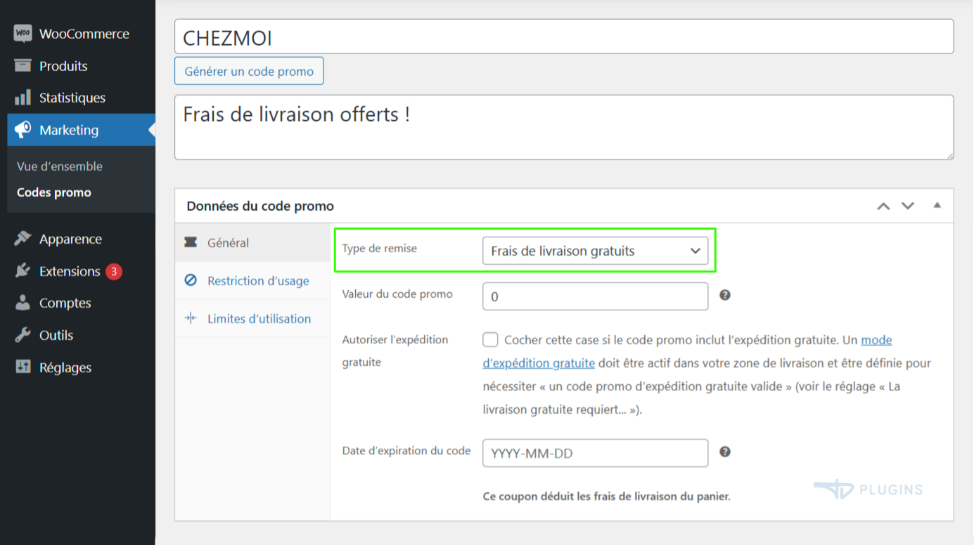 Offrez la livraison gratuite avec un coupon WooCommerce